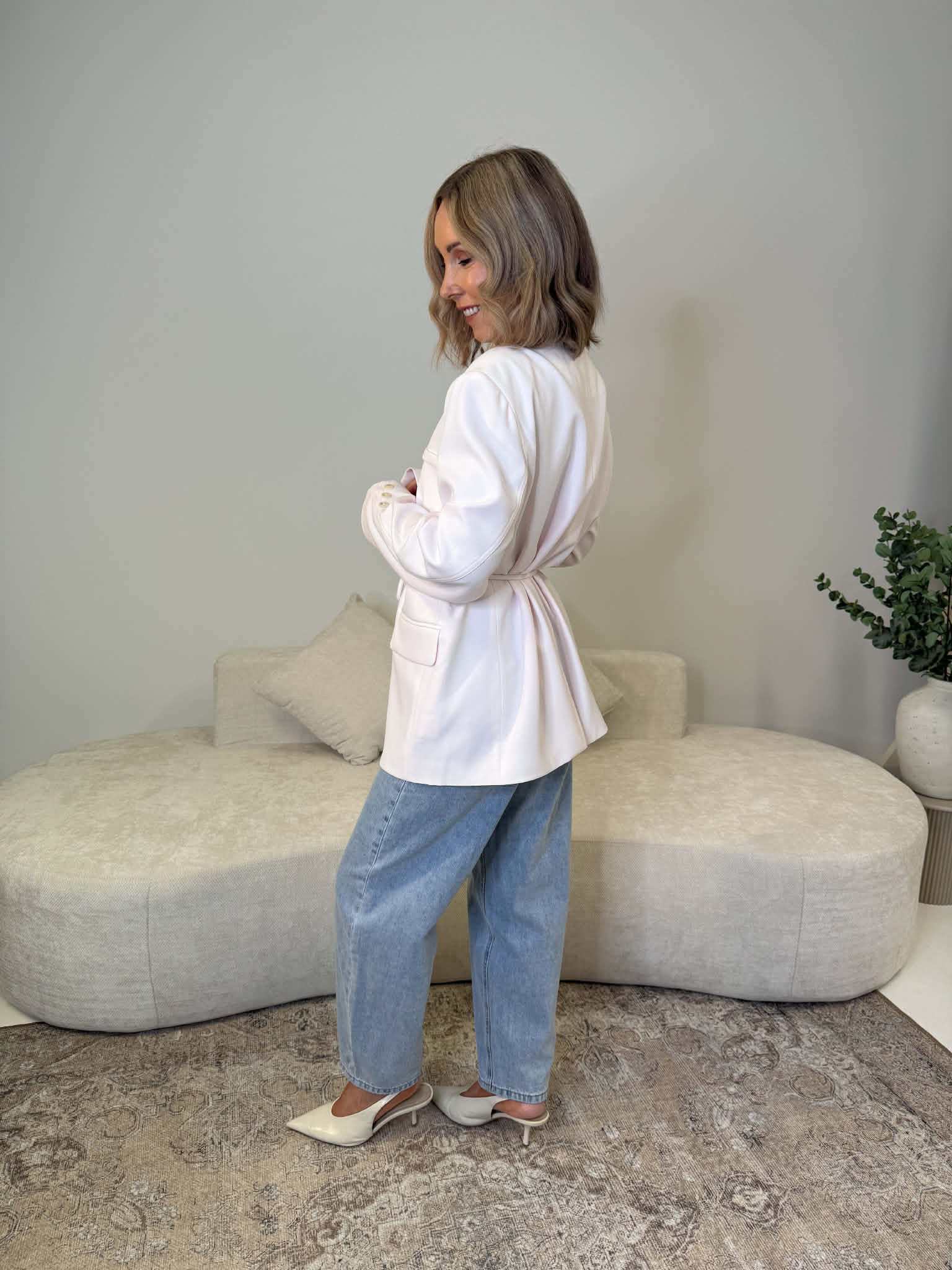 The Felix Tie Blazer – Rose Pink is the ultimate statement layer for effortless, elevated styling.