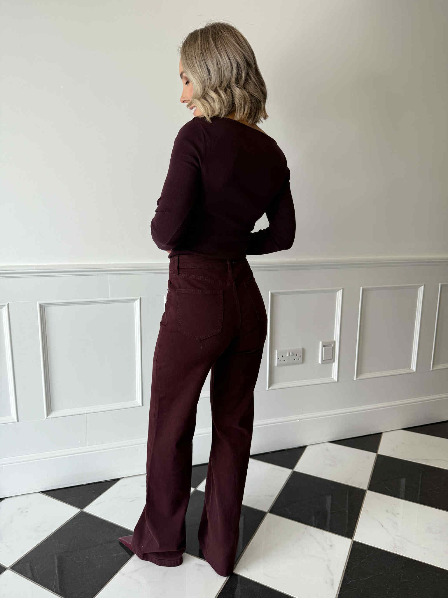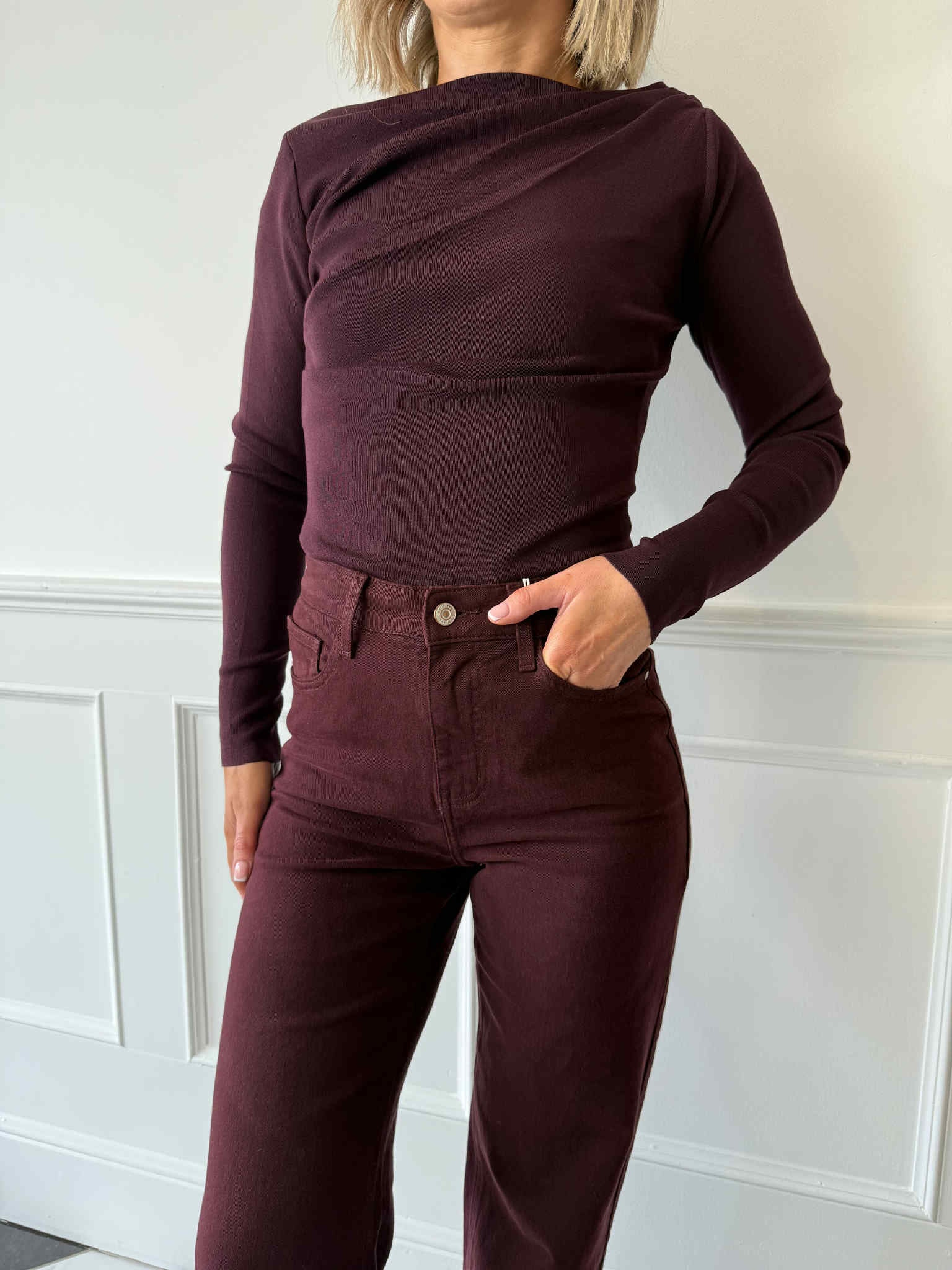 Lilly Ruched Boat Neck Knit Top - Burgundy