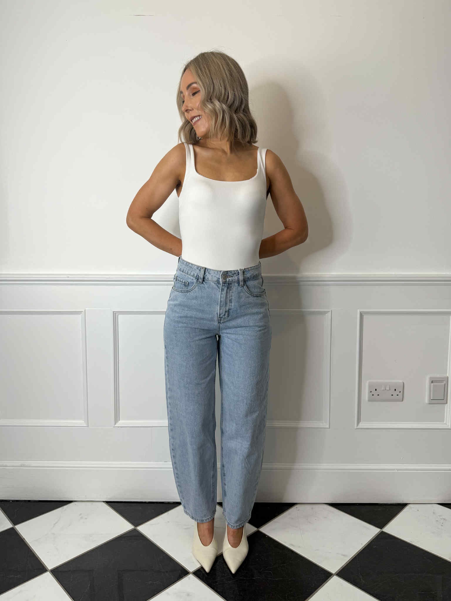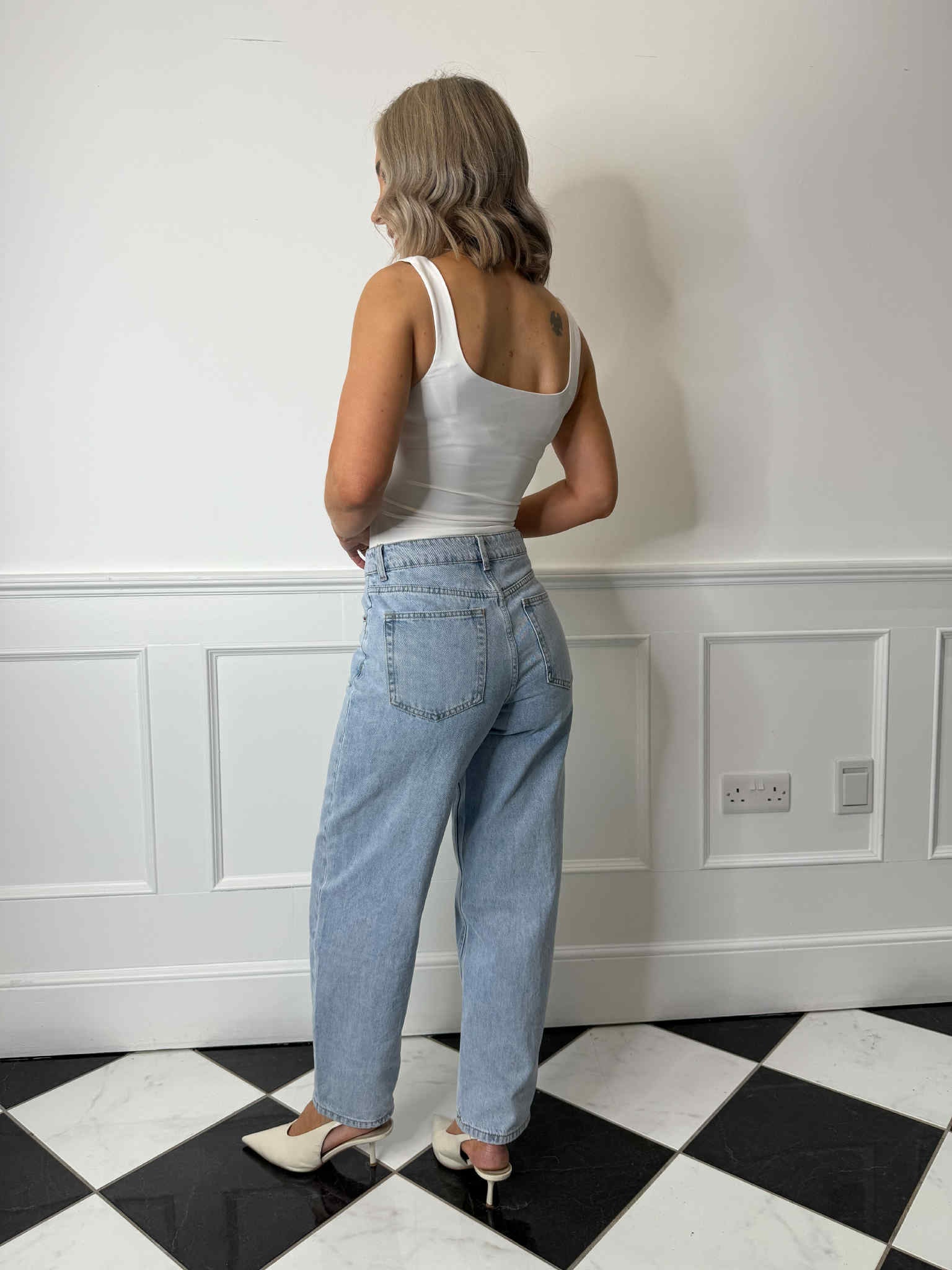 Elevate your everyday wardrobe with these light blue relaxed jeans, designed in a modern barrel-leg silhouette. Their versatile cut and rich tone bring effortless sophistication, making them ideal for transitioning from casual daytime wear to polished evening looks.