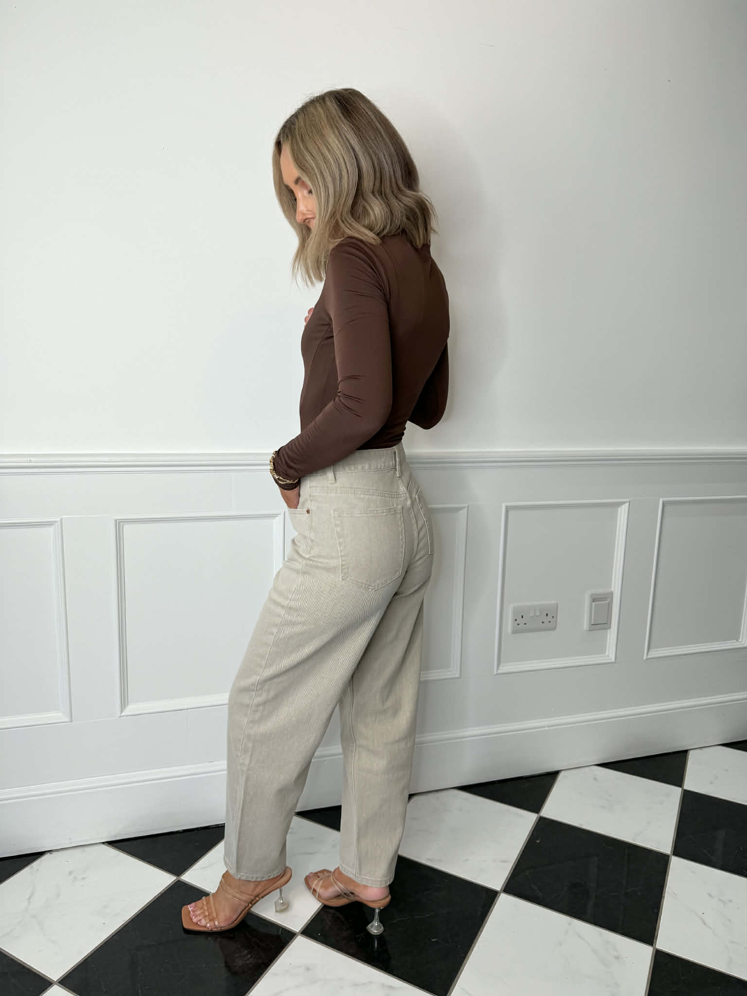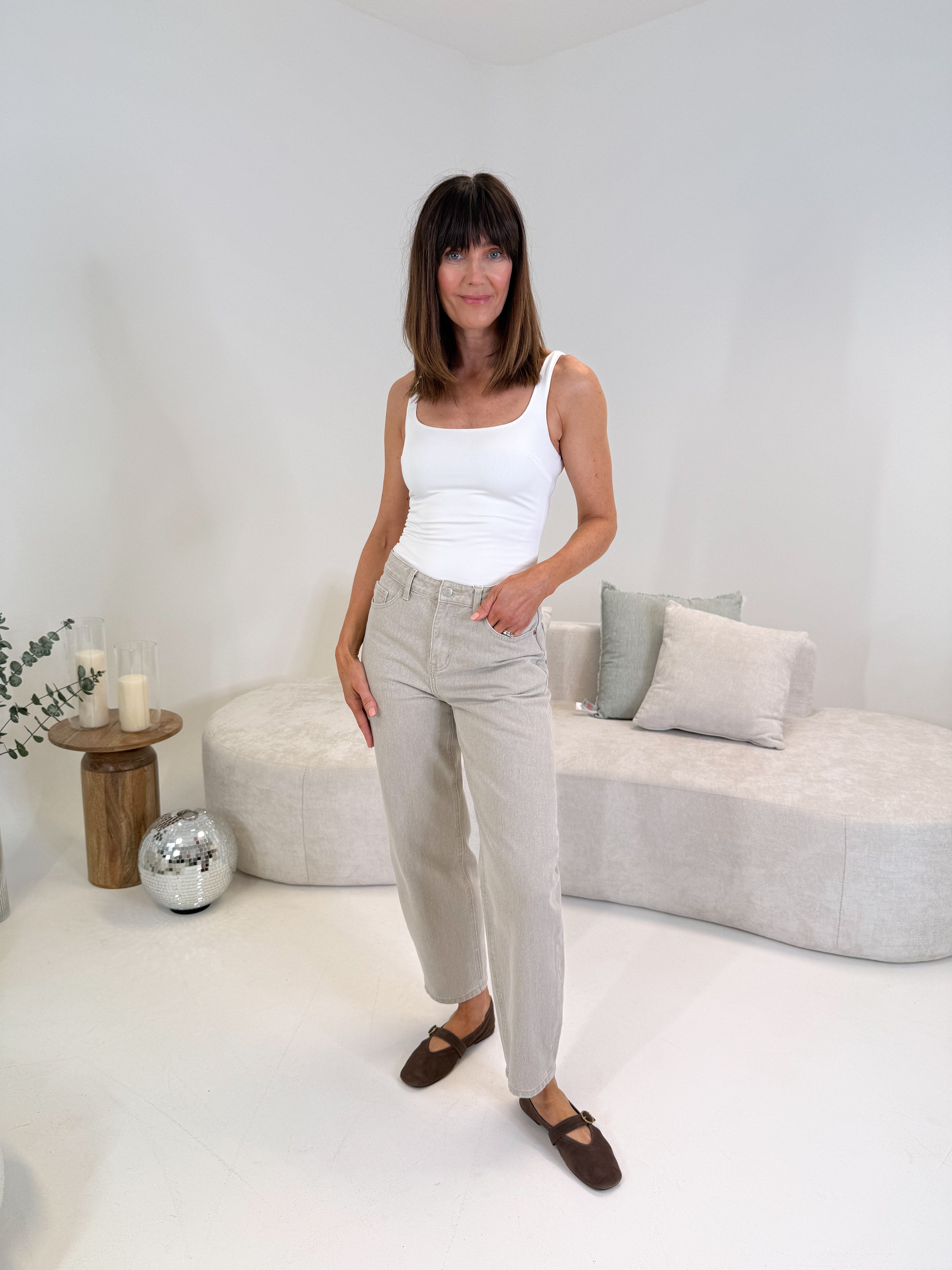 Elevate your everyday wardrobe with these taupe relaxed jeans, designed in a modern barrel-leg silhouette. Their versatile cut and rich tone bring effortless sophistication, making them ideal for transitioning from casual daytime wear to polished evening looks.