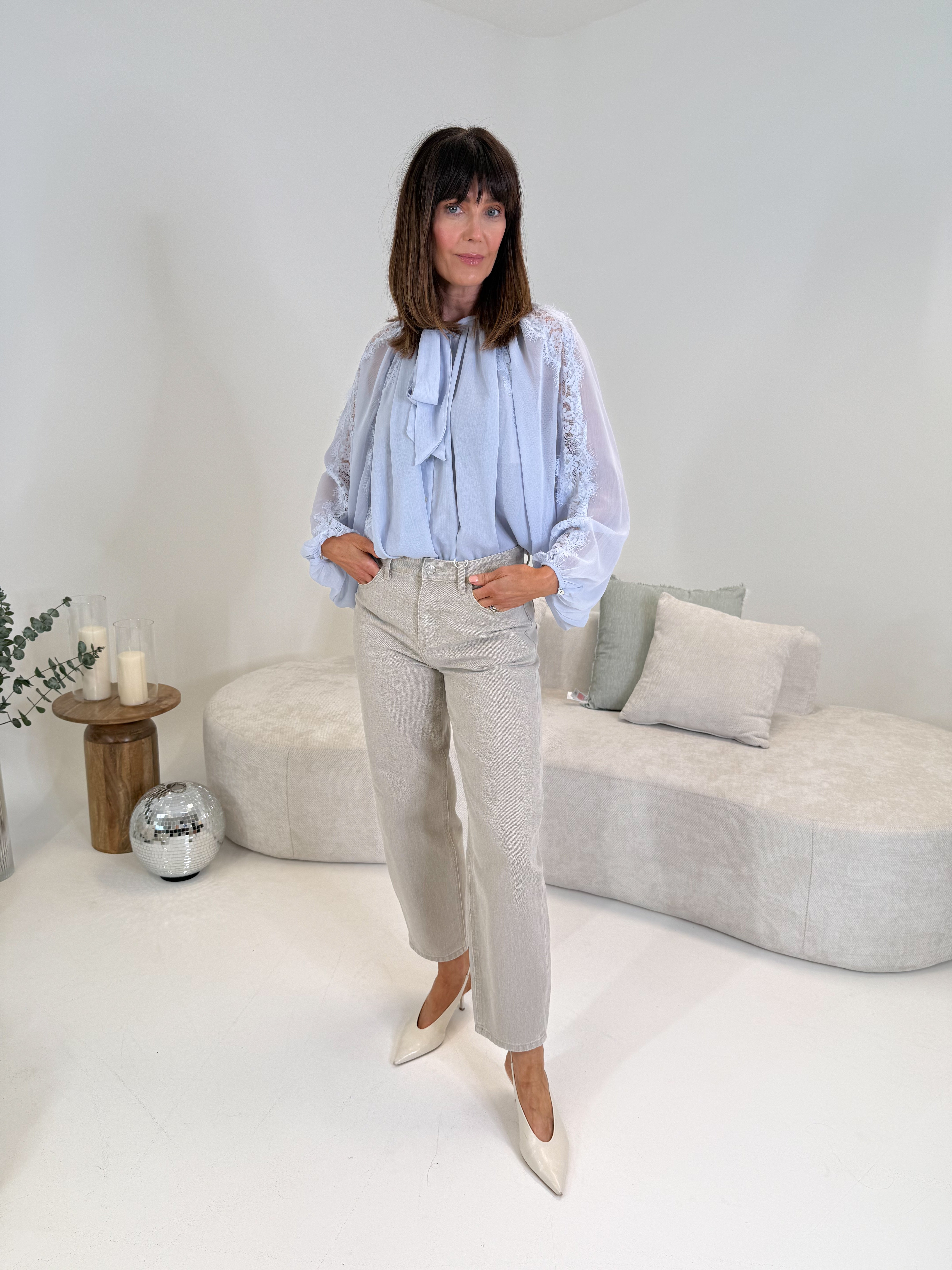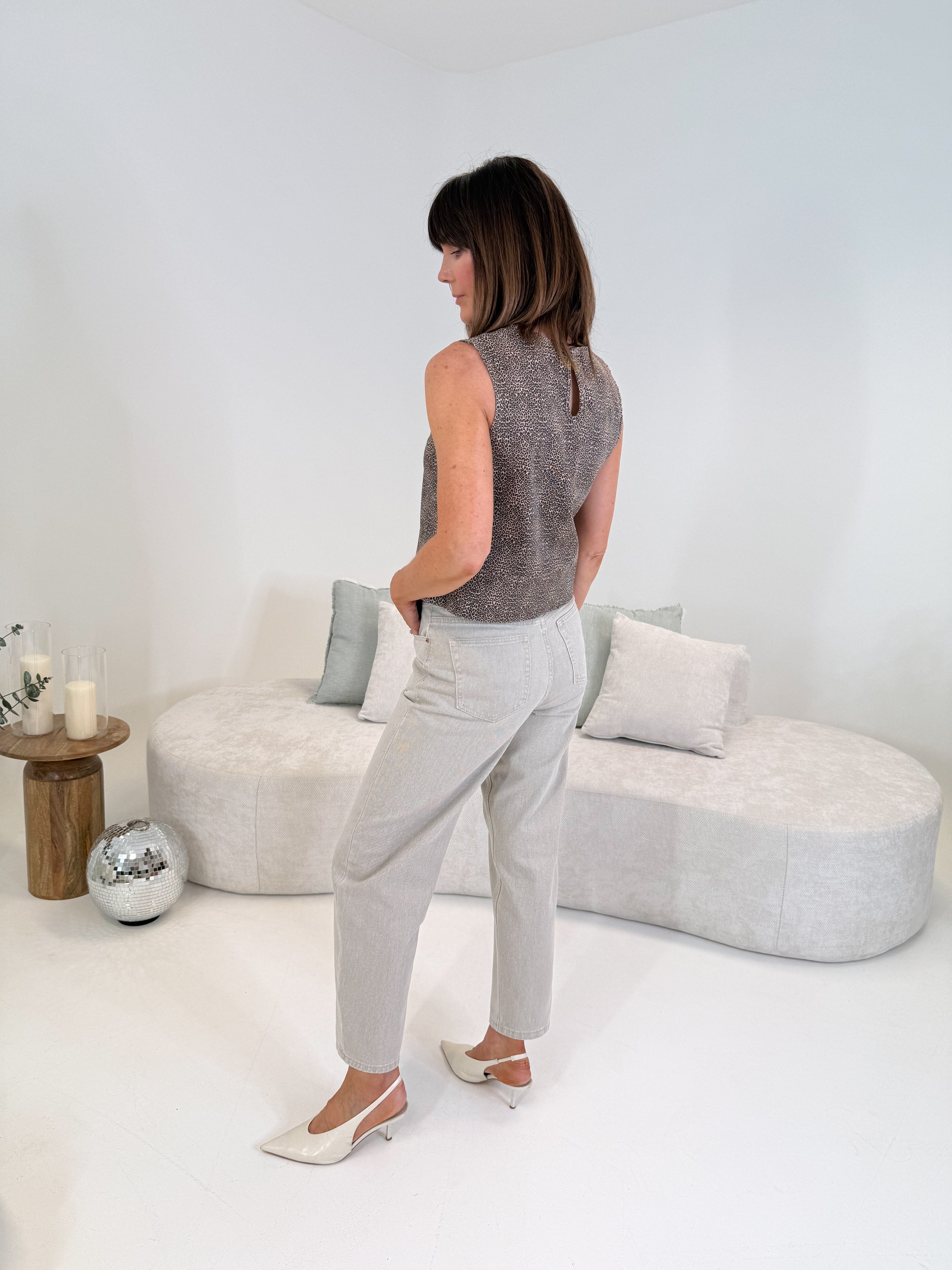 Gina is 5’8 and wears size 36(UK8), Sinead is 5'4 and wears size 34(UK6)