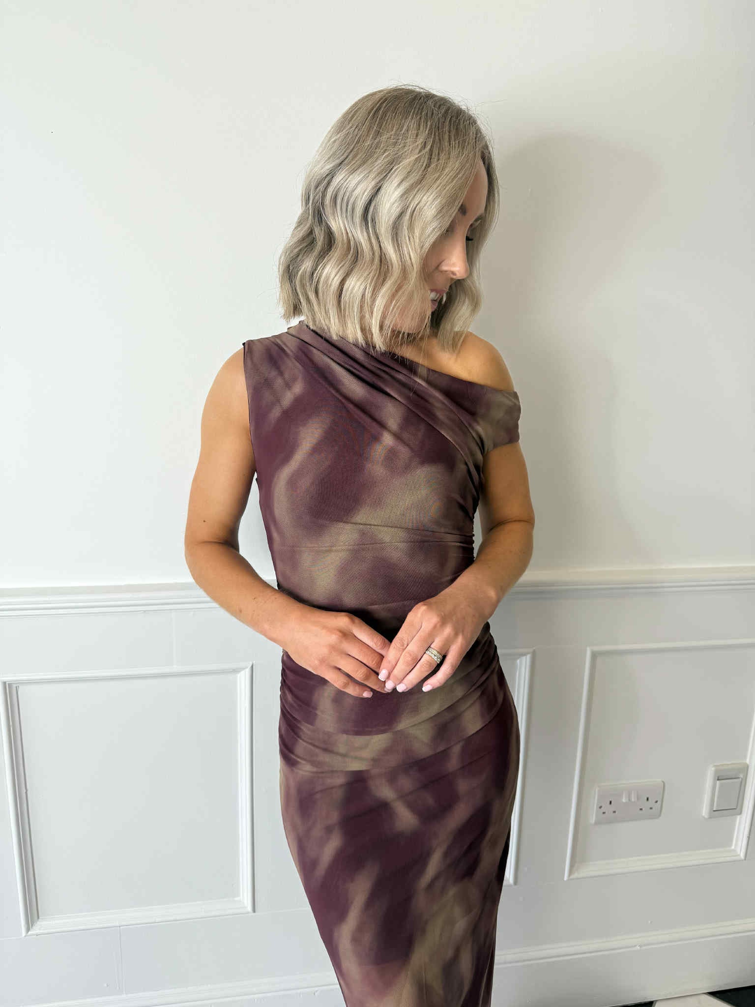 Eliana Sleeveless Mesh Dress - Burgundy/Khaki
