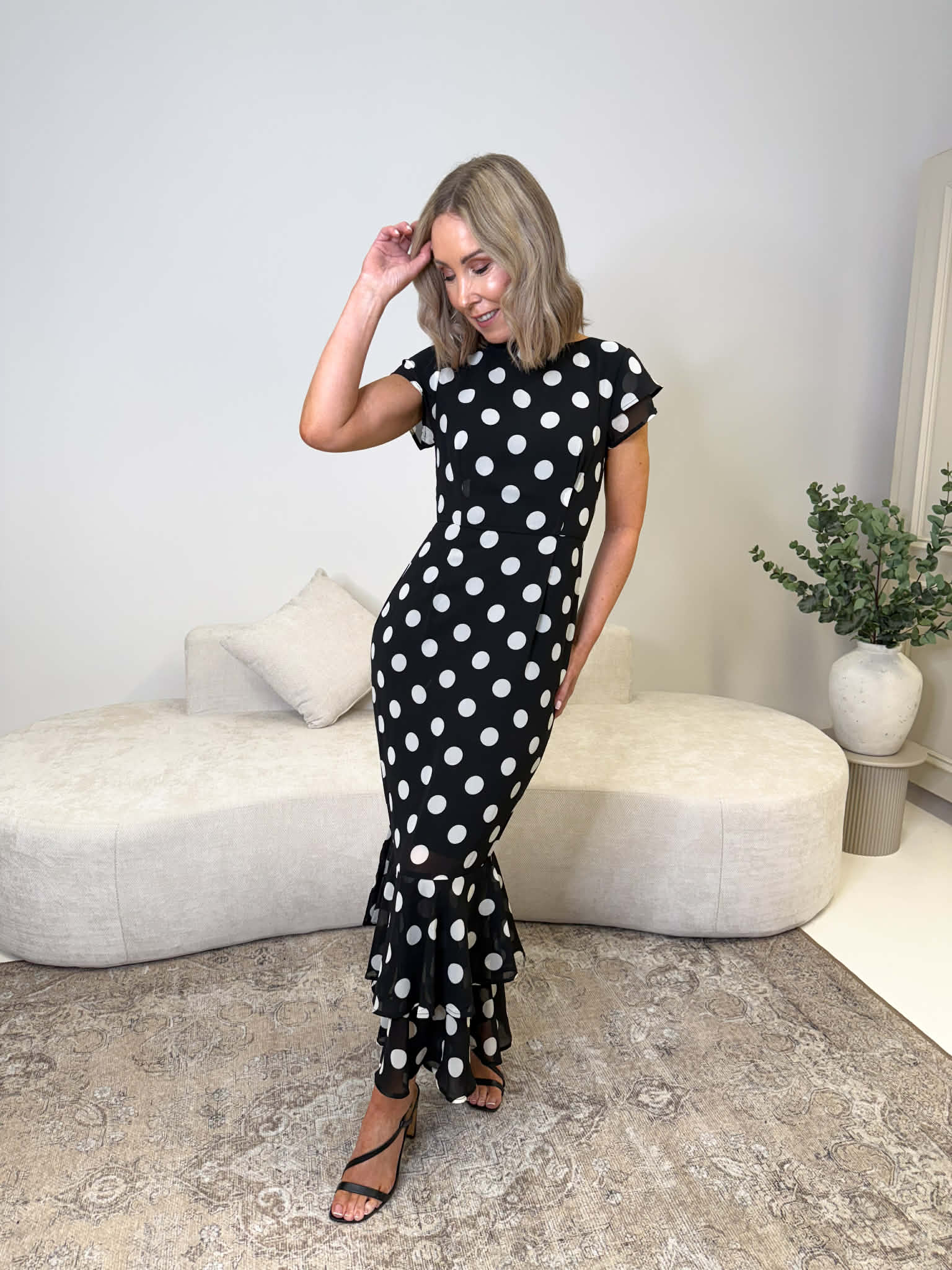Elevate your wardrobe with the Roxy Boat Neck Frill Midi in Black Spot – a glamorous piece that turns heads. Double frill sleeves add a touch of drama and movement, while the matching frill hem creates an effortlessly chic silhouette. The classic boat neckline keeps things sophisticated, making this midi dress perfect for everything from brunch dates to evening occasions. Playful polka dots bring personality to timeless elegance.