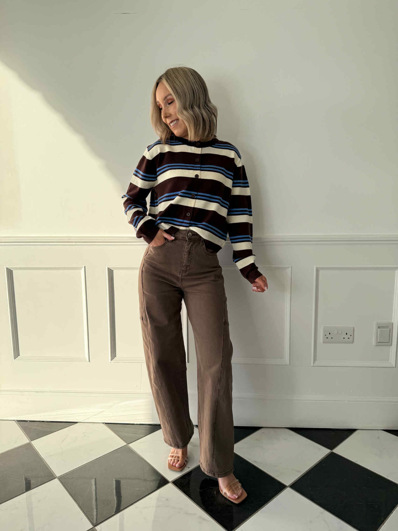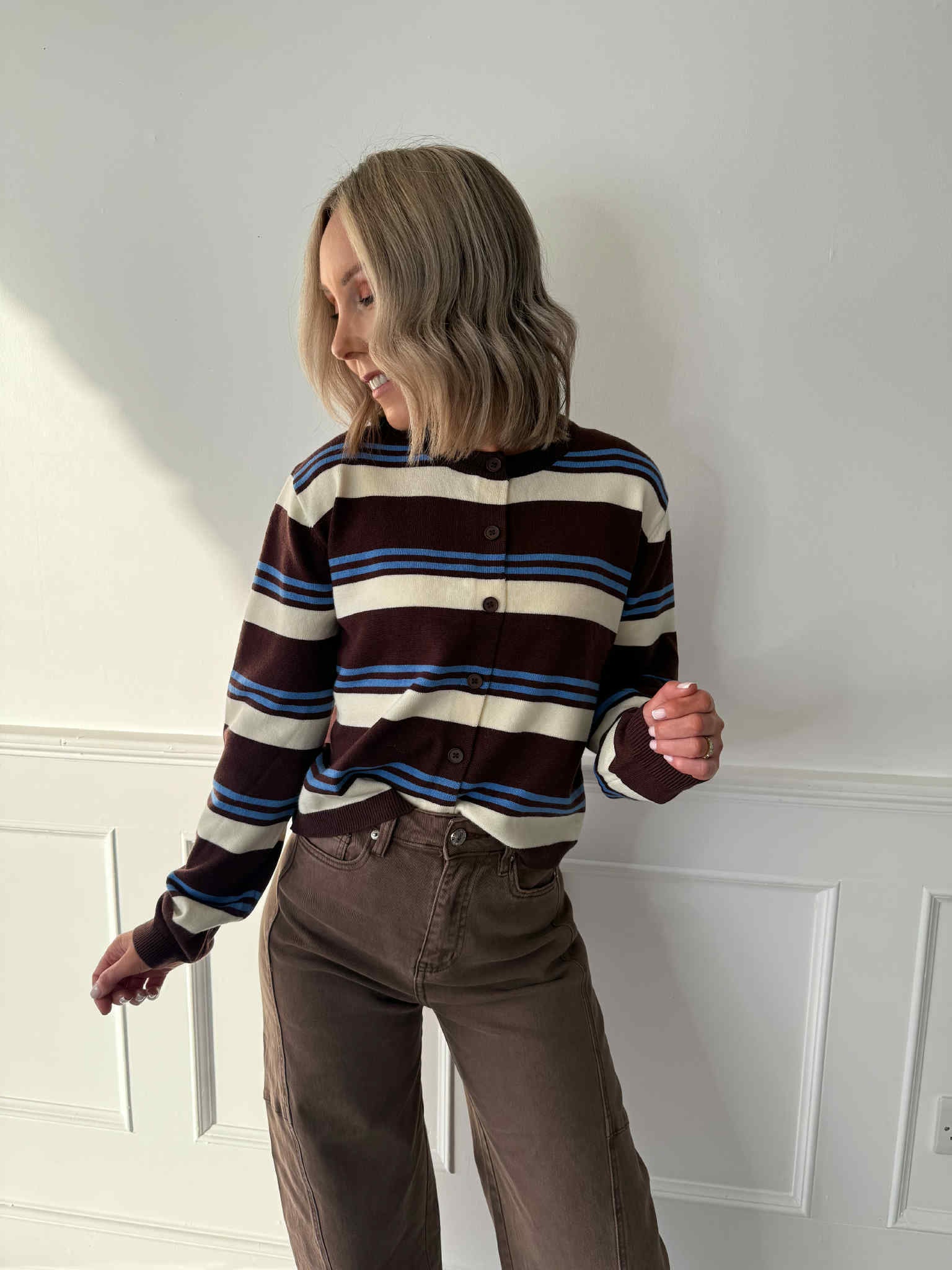 The Charlie Cardigan is an easy everyday knit with a classic striped design in blue, brown and cream. Featuring long sleeves and a relaxed fit, it’s the perfect layering piece to throw on with your favourite jeans for an effortlessly put-together look.