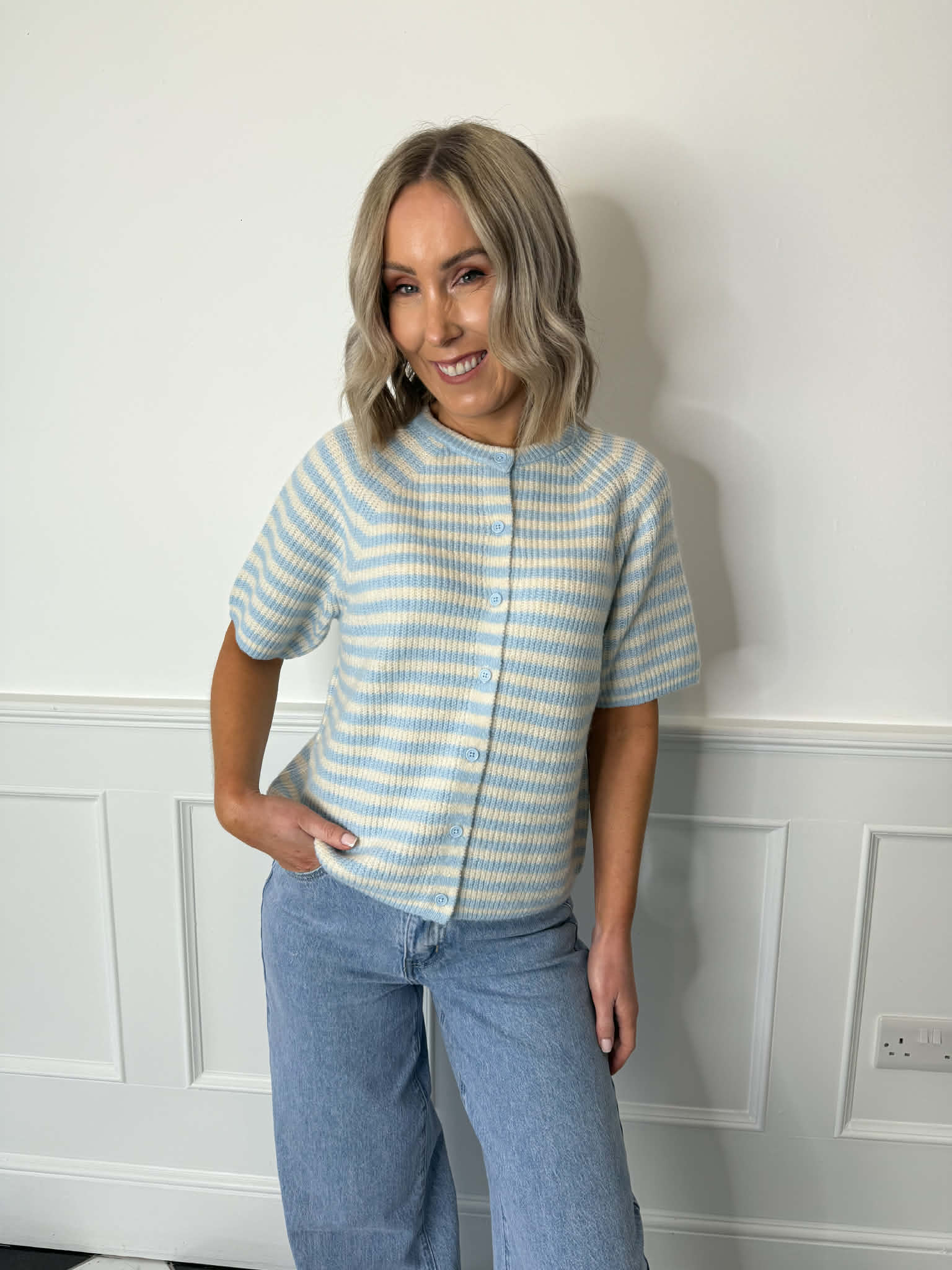 Malou Stripe Knit Cardigan - Blue