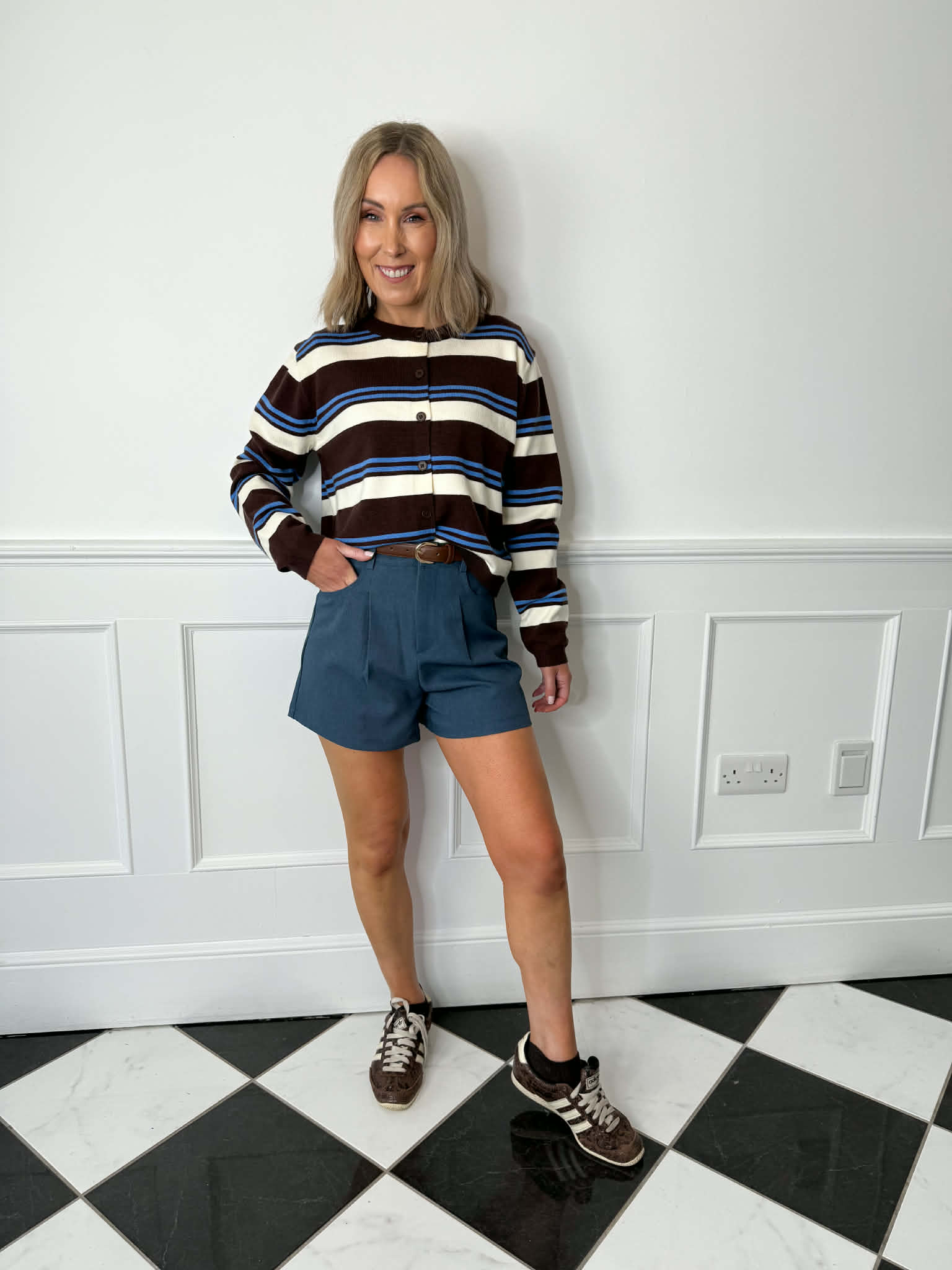 Step into effortless sophistication with these brown belted tailored shorts. Expertly crafted for a flattering fit, they feature a high-waisted silhouette with a matching belt that cinches the waist for a refined, polished look. The tailored design with crisp pleats and clean lines ensures versatility—perfect for pairing with a blouse for work-ready elegance or a casual tee for weekend chic. Made from soft, breathable fabric, these shorts combine comfort and style for a wardrobe essential you’ll reach for time and again.