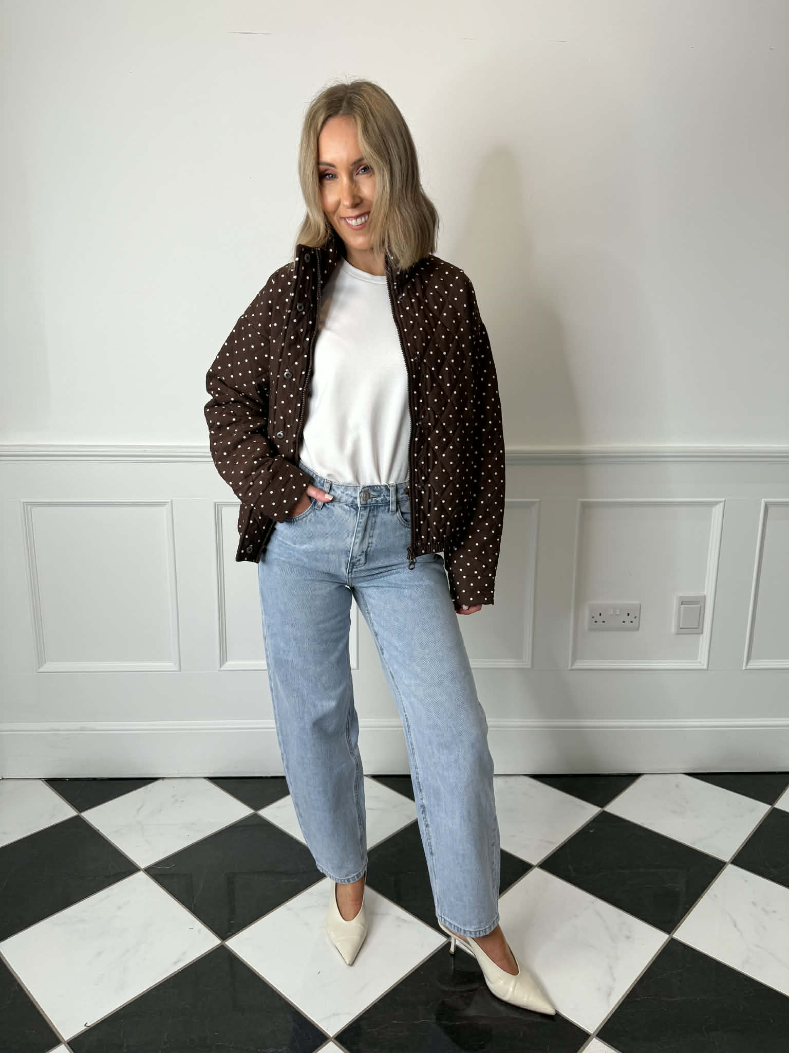Familla Quilted Bomber Jacket - Brown Polka