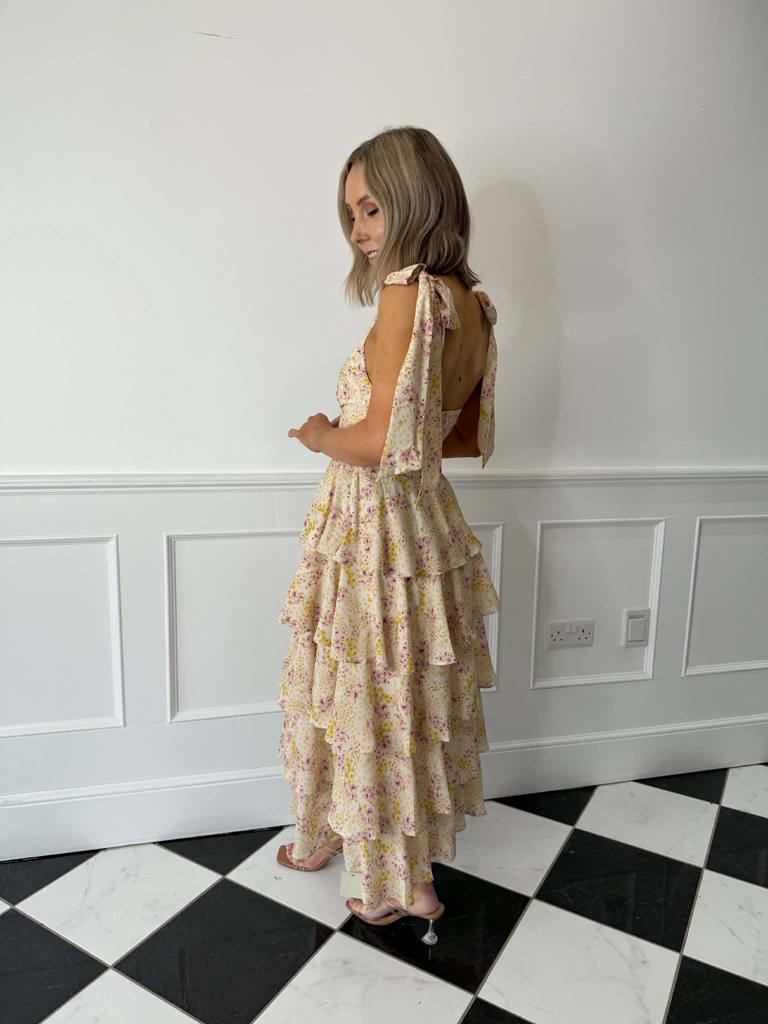 Fiore Tie Ruffle Maxi Dress - Ditsy Floral