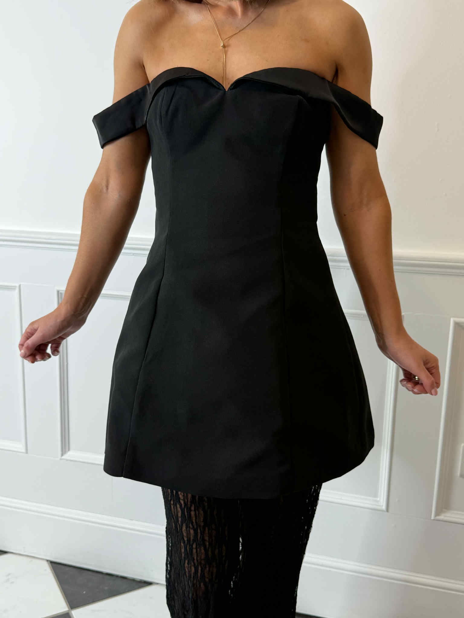 Step into party season with effortless allure in the Kali Bardot Mini Dress; a study in timeless sophistication and feminine poise. Designed for the modern muse, this minimalist yet striking silhouette features an elegant off-the-shoulder Bardot neckline that frames the décolletage with understated grace.