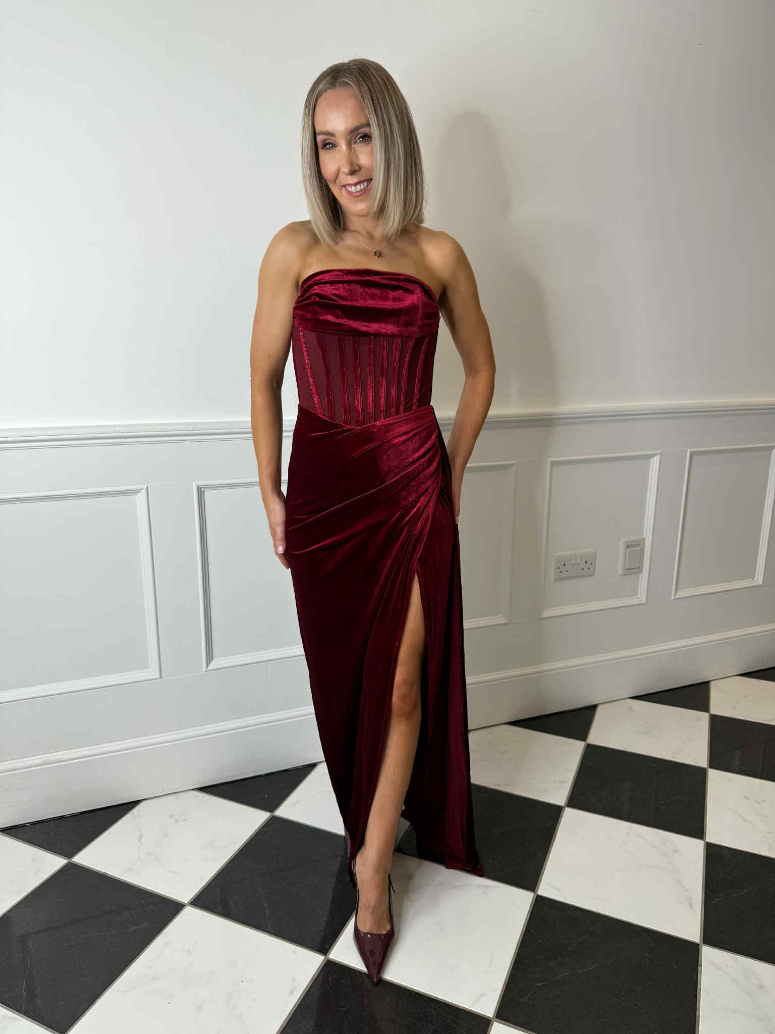 Karlee Velvet Corset Maxi Dress - Rich Berry