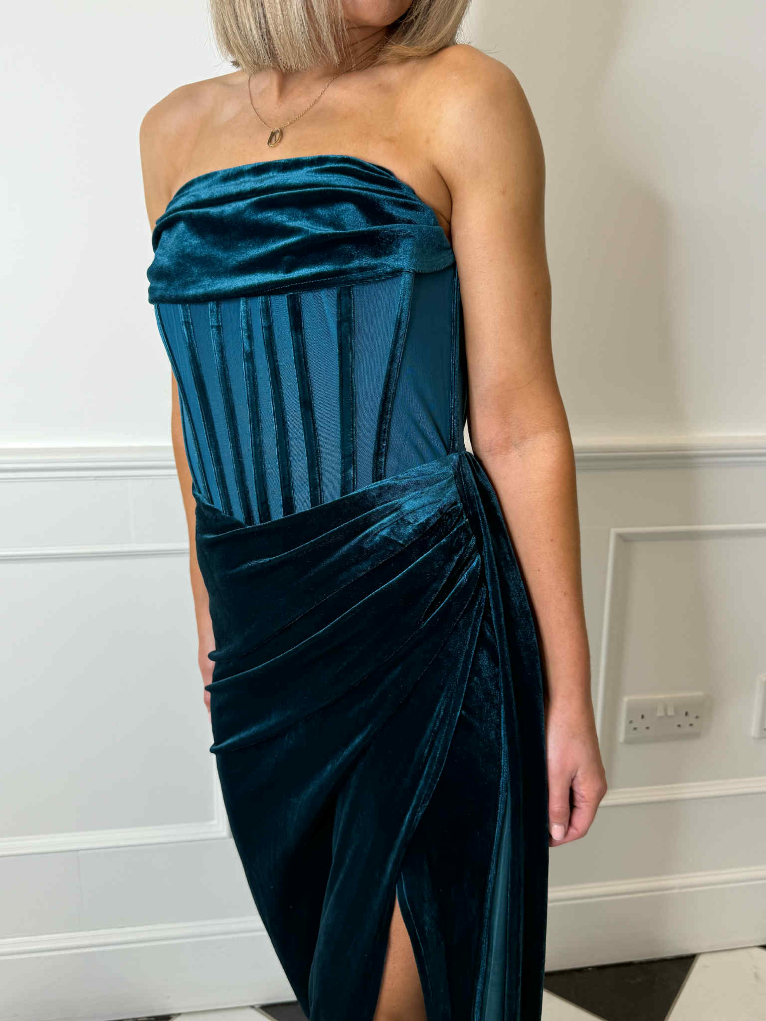 Karlee Velvet Corset Maxi Dress - Rich Turquoise