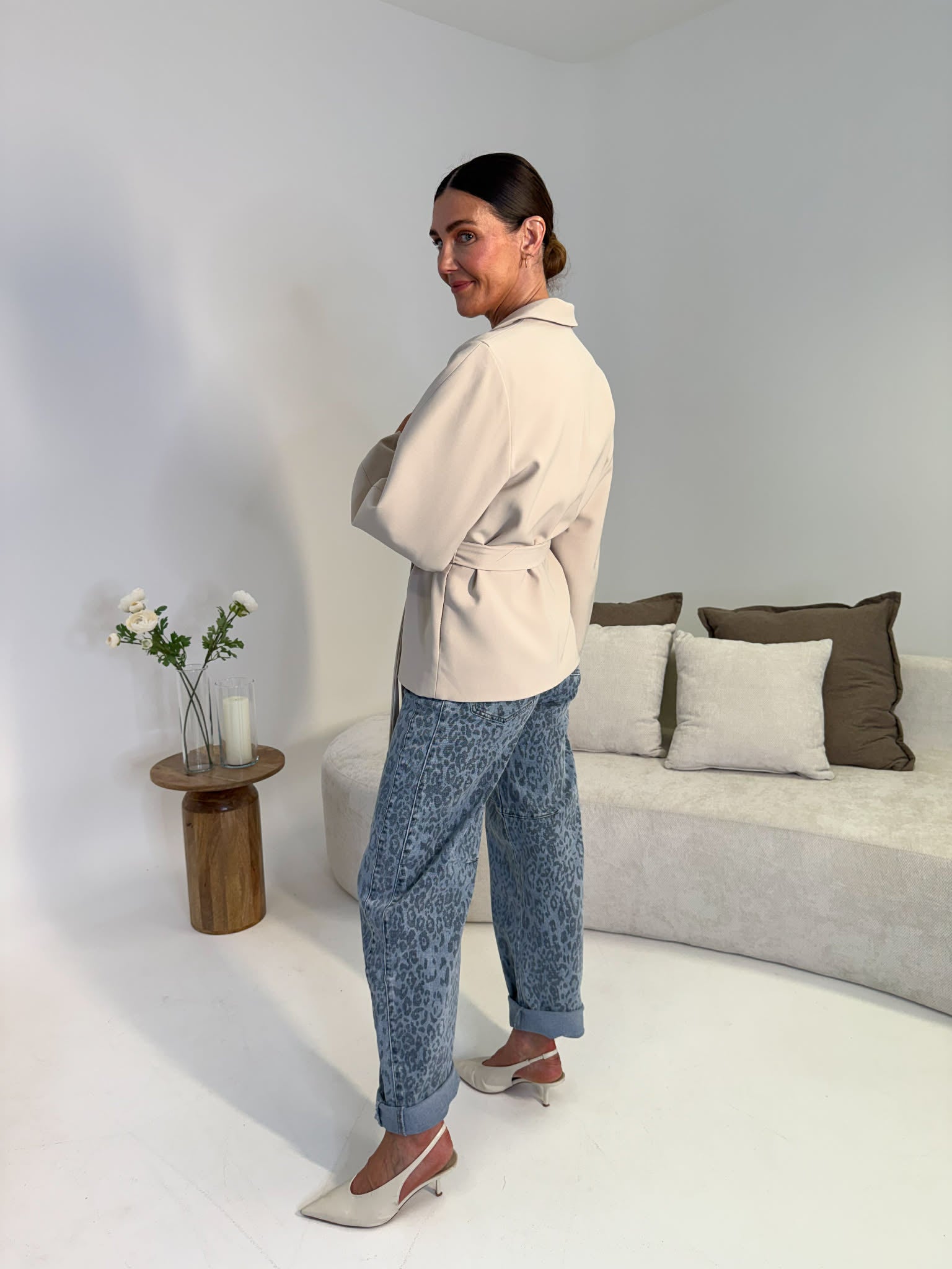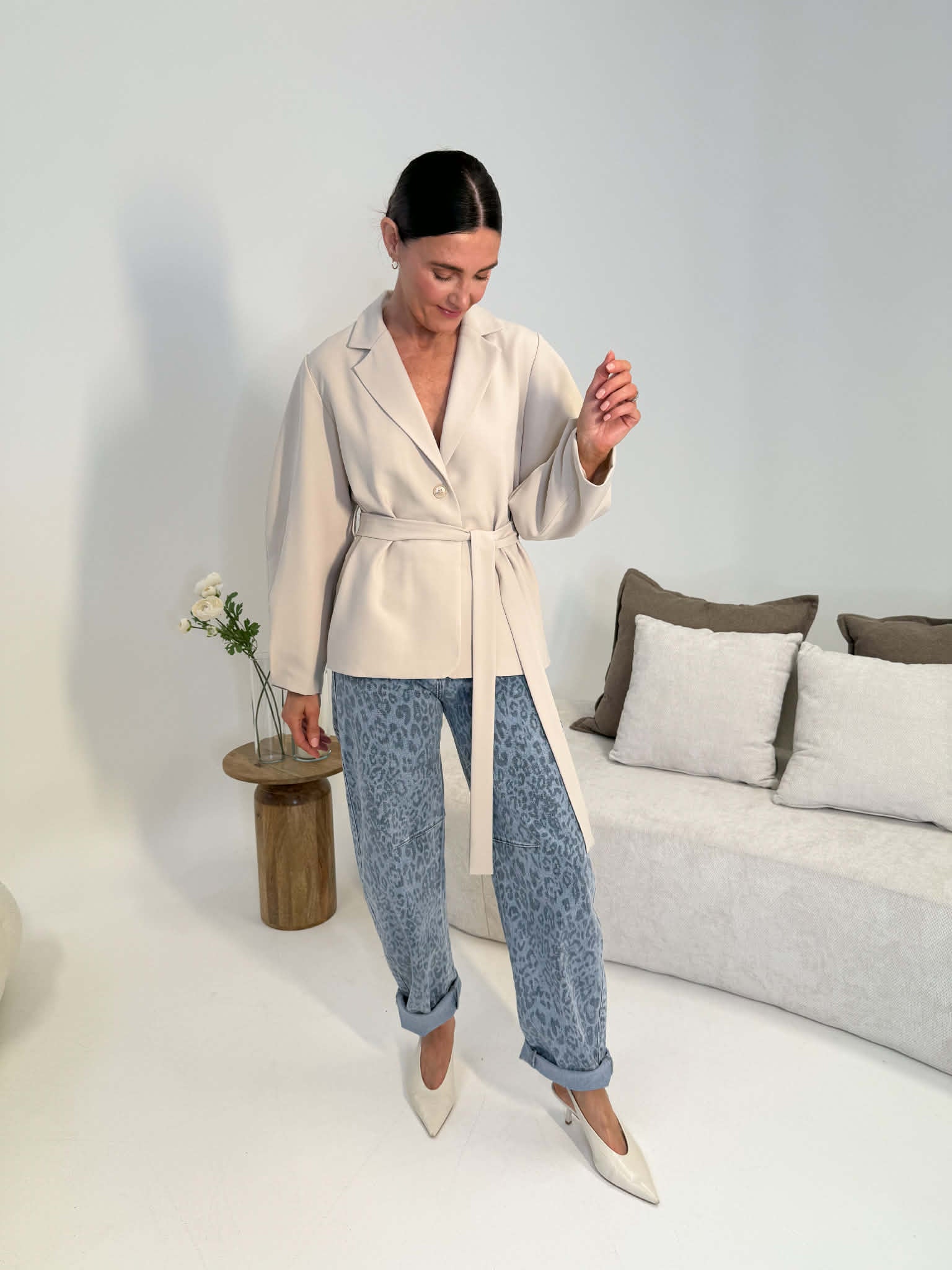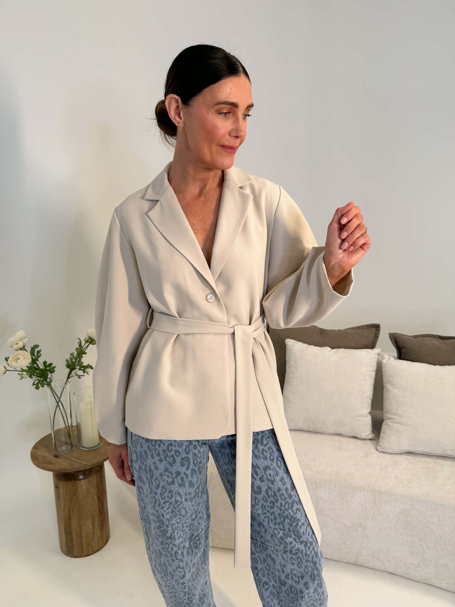 Lexi Balloon Sleeve Belted Blazer - Beige