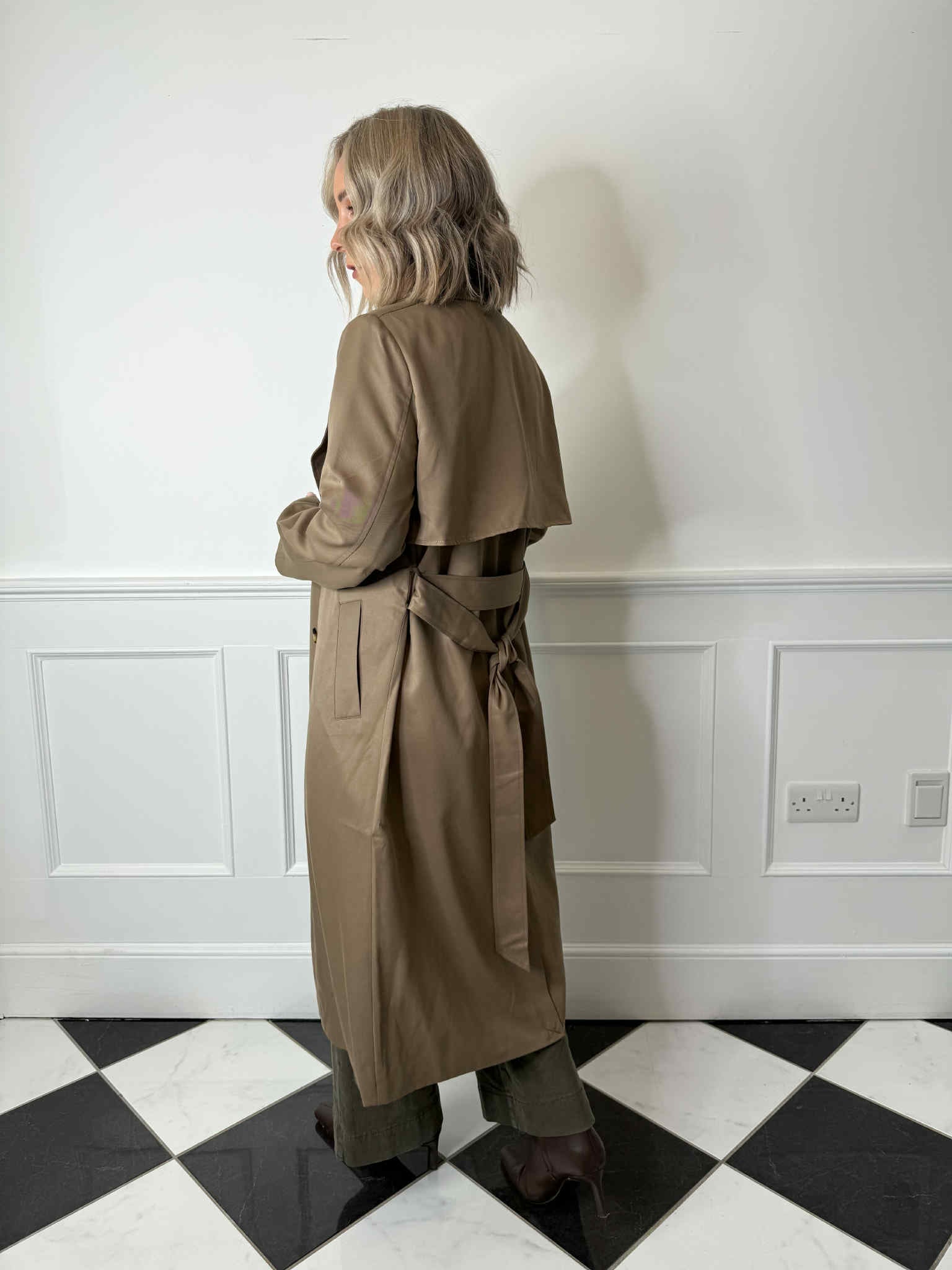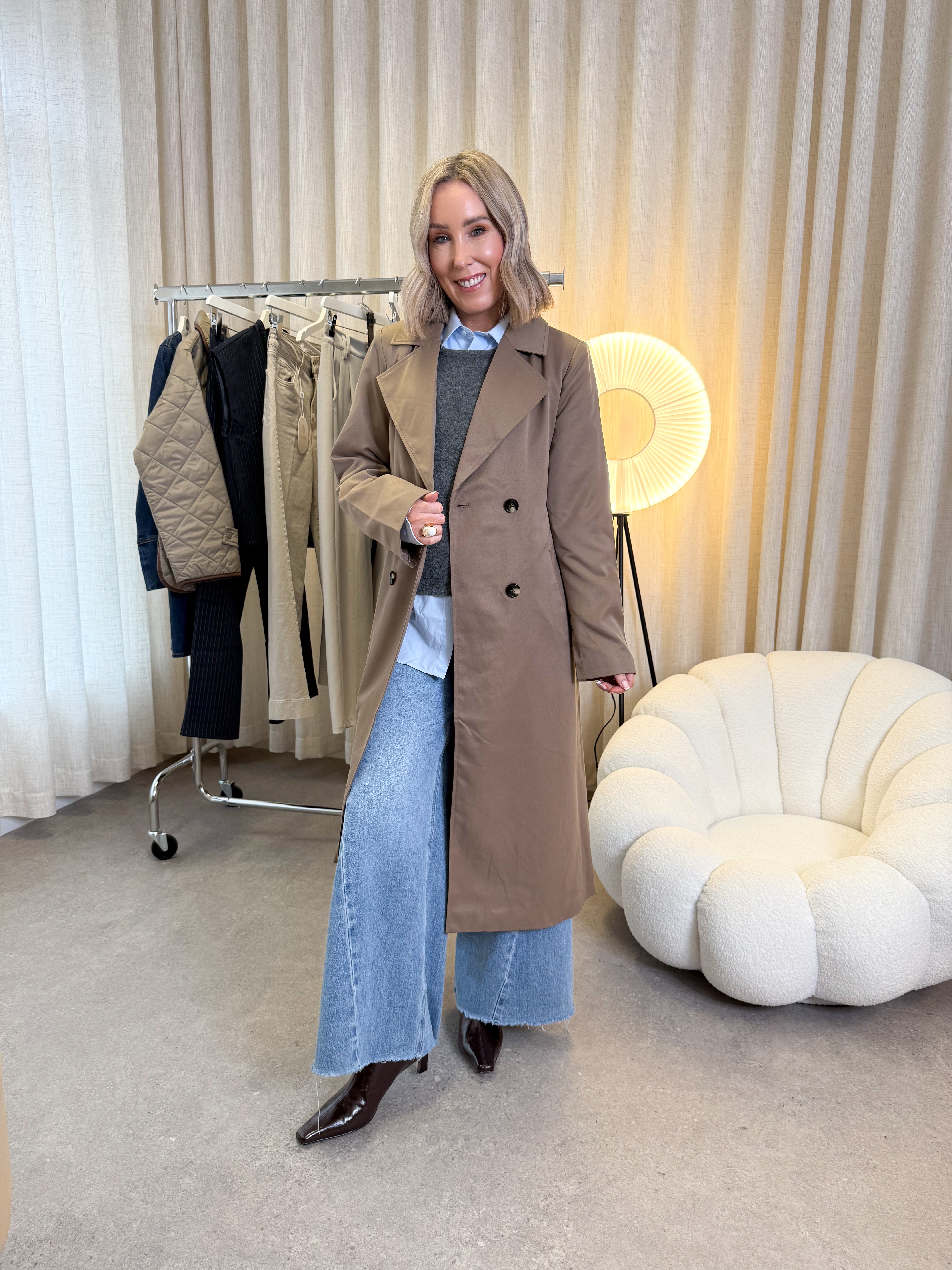 A timeless outerwear staple with a modern edge, the Scarlett trenchcoat is designed in a classic double-breasted silhouette with elevated detailing. Featuring a large notched lapel, long sleeves, and a waist-cinching tie belt, it delivers effortless structure and everyday polish. Finished with a back flap detail and a comfortable regular fit, it’s the perfect layering piece for transitional seasons.