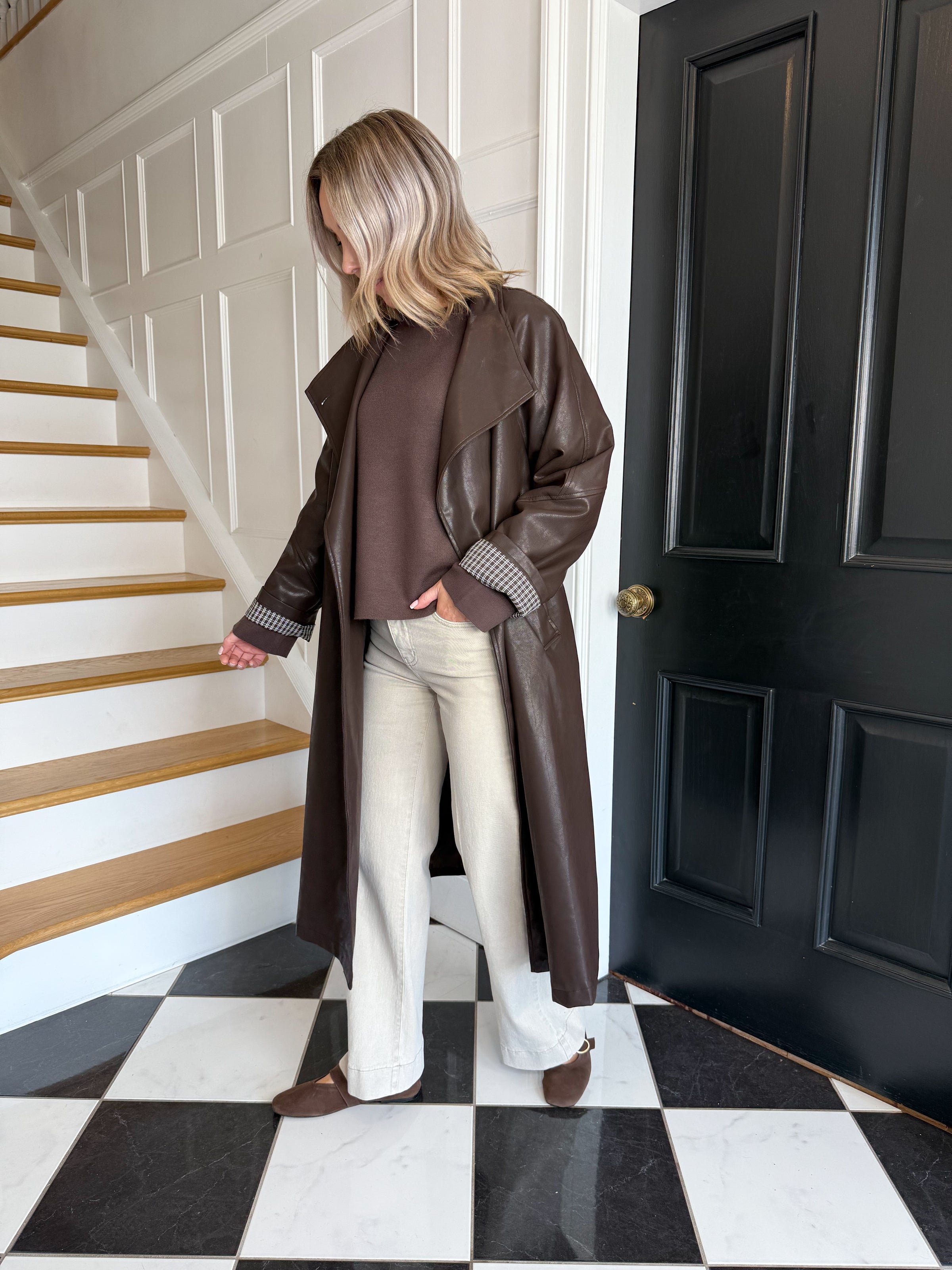 PRE ORDER Willow Long Faux Leather Trench Coat - Chocolate